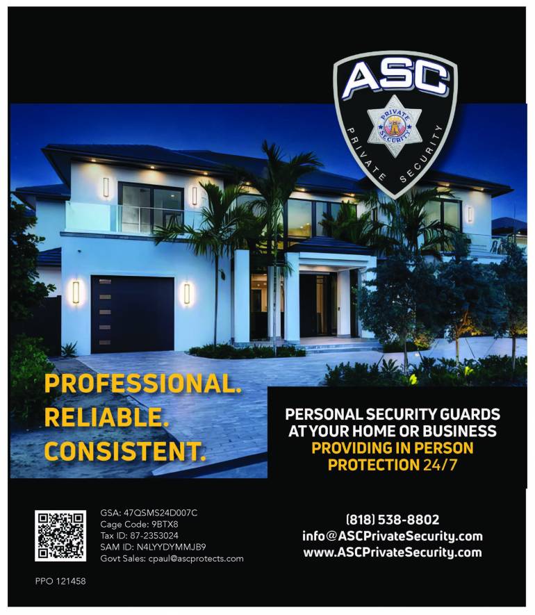 ASC Private Security was awarded GSA Contract No. 47QSMS24D007C under NAICS 561612 – Security Guards and Patrol Services and is fully registered in SAM.gov with UEI: N4LYYDYMMJB9. The company is licensed by the State of California, Bureau of Security and Investigative Services (PPO 121458), ensuring full regulatory compliance for both government and commercial engagements.