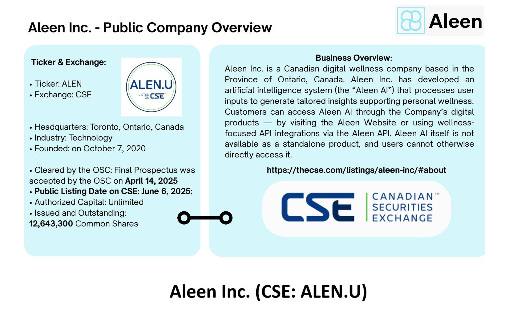For investors watching the evolving digital wellness sector, Aleen stands out not by aggressive claims, but by discipline, transparency, and platform clarity. The company's steady product refinement, combined with its public-market presence and clearly articulated long-term strategy, suggests an organization focused on sustainable growth rather than short-term hype.
