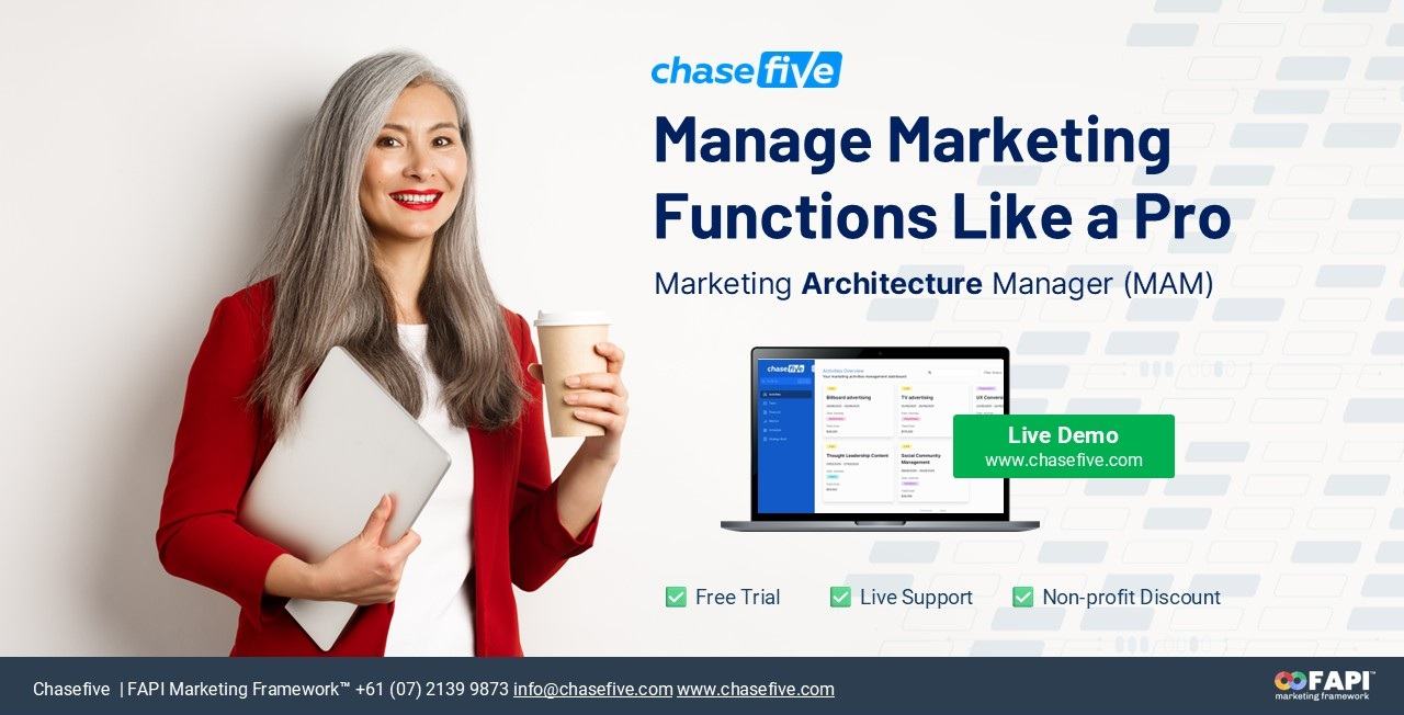 BRISBANE, Australia - TelAve -- Chasefive today announced the Chasefive MAM Software Partner Program, a certification and enablement pathway designed for marketing professionals and Operations Managers who implement and operate the Chasefive Marketing Architecture Manager (MAM) software in organizational environments.