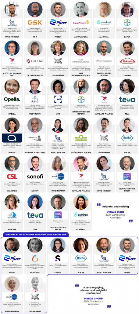 Speakers include leaders from Pfizer, Novartis, Roche, Sanofi, and Novo Nordisk, sharing strategies that can be implemented immediately.