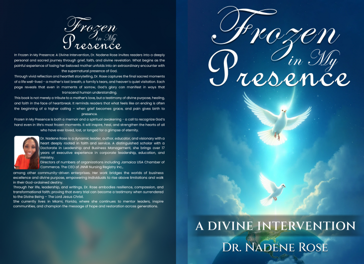 In Frozen in My Presence, Dr. Rose recounts the sacred hours spent at her mother's bedside in a Jamaican hospital. What began as medical uncertainty became, in her words, a divine encounter. When her mother cried out, "Lord, have mercy on Josephine Rose," before peacefully transitioning, Dr. Rose describes a stillness that filled the room and forever changed her understanding of life, death, and God's presence.