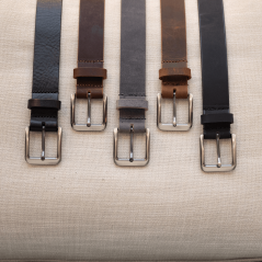 Roan Mountain Distressed Leather Belt: A go-to for casual comfort, this belt features a soft, distressed full grain leather strap and a classic gunmetal-gray buckle. Customers love how it breaks in beautifully and delivers reliable performance with a comfortable, lived-in feel.