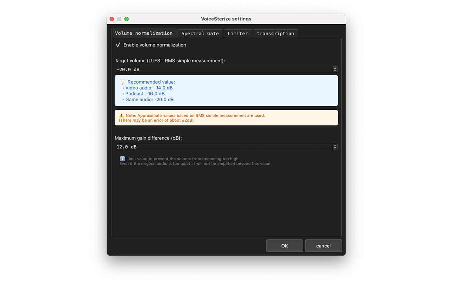 - Broadcast-Standard Loudness Normalization: The application integrates a mastering chain compliant with ITU-R BS.1770 standards. It automatically normalizes audio to -16 LUFS (Integrated), the de facto standard for Podcasts. Furthermore, the built-in True Peak Limiter prevents inter-sample peaks and digital clipping, ensuring broadcast-safe audio levels for any platform.