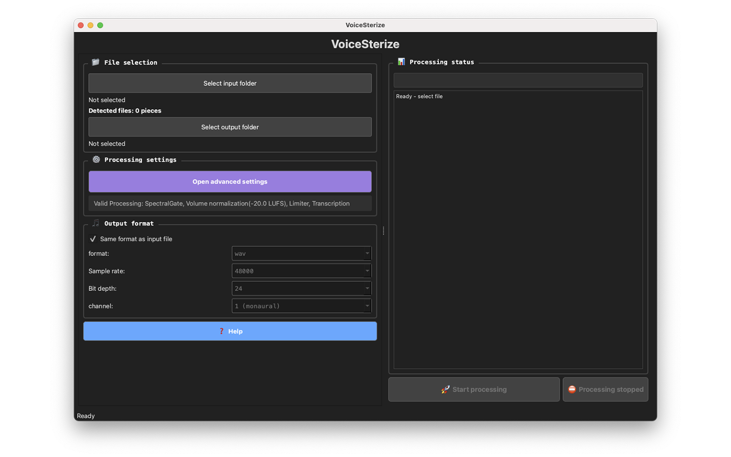 - Algorithmic Precision, Not AI Generation: Unlike recent "Generative AI" tools that synthesize artificial voices, VoiceSterize relies on SpectralNoiseGate, a pure Digital Signal Processing (DSP) algorithm, for noise reduction. It does not use AI to alter the audio signal. AI is utilized exclusively for the text transcription feature. This approach preserves the speaker's original emotion, intonation, and authenticity without generating fake audio data.