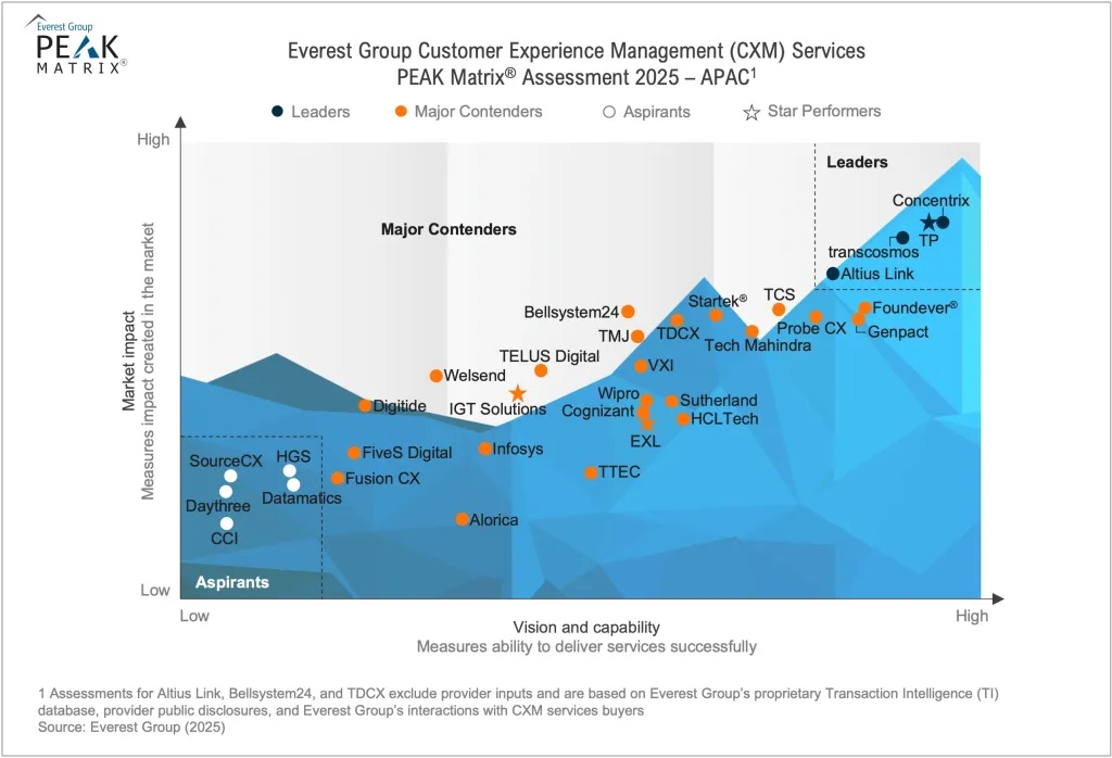 Reference:Customer Experience Management (CXM) Services PEAK Matrix® Assessment 2025 – APAC https://www2.everestgrp.com/report/egr-2025-21-r-7534/