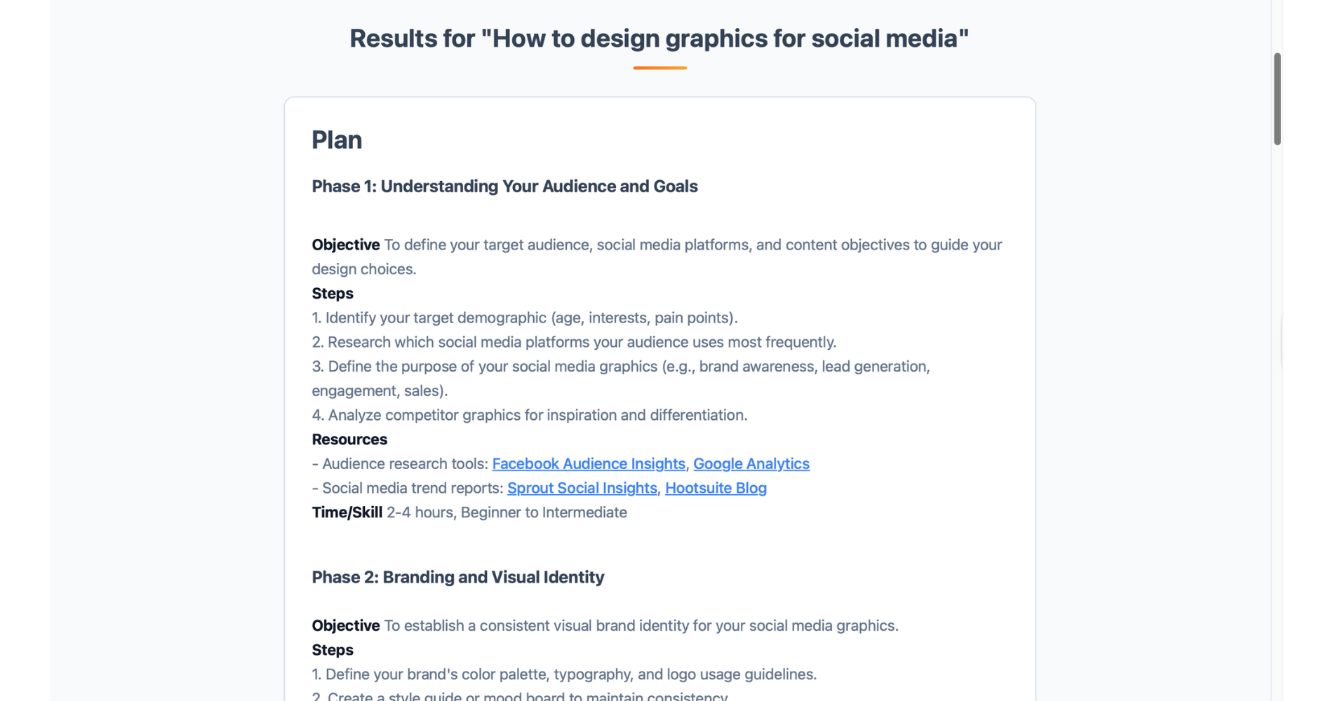 The AI assistant asks users any "How to …" query, ranging from How to clean a Fan to How to be a neuroscientist, " and maps the journey into manageable phases. Each phase includes an objective, recommended steps, time estimates and a list of free resources.