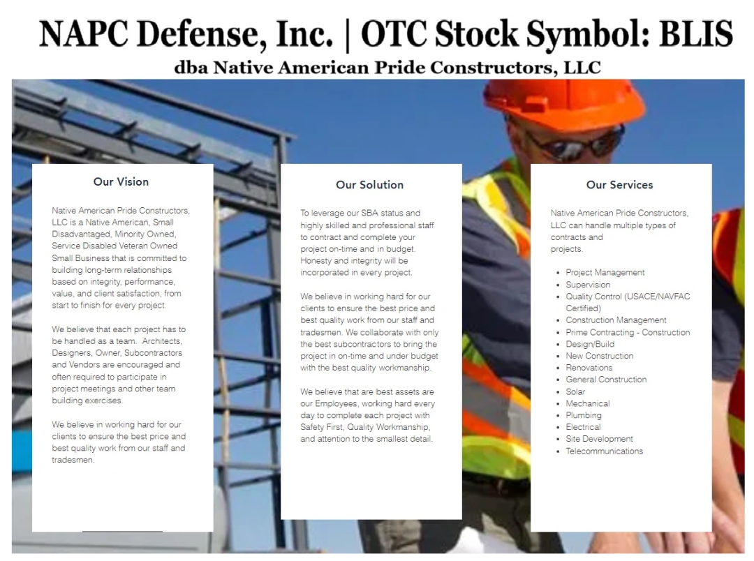Company Name: NAPC Defense, Inc. (Stock Symbol: BLIS)