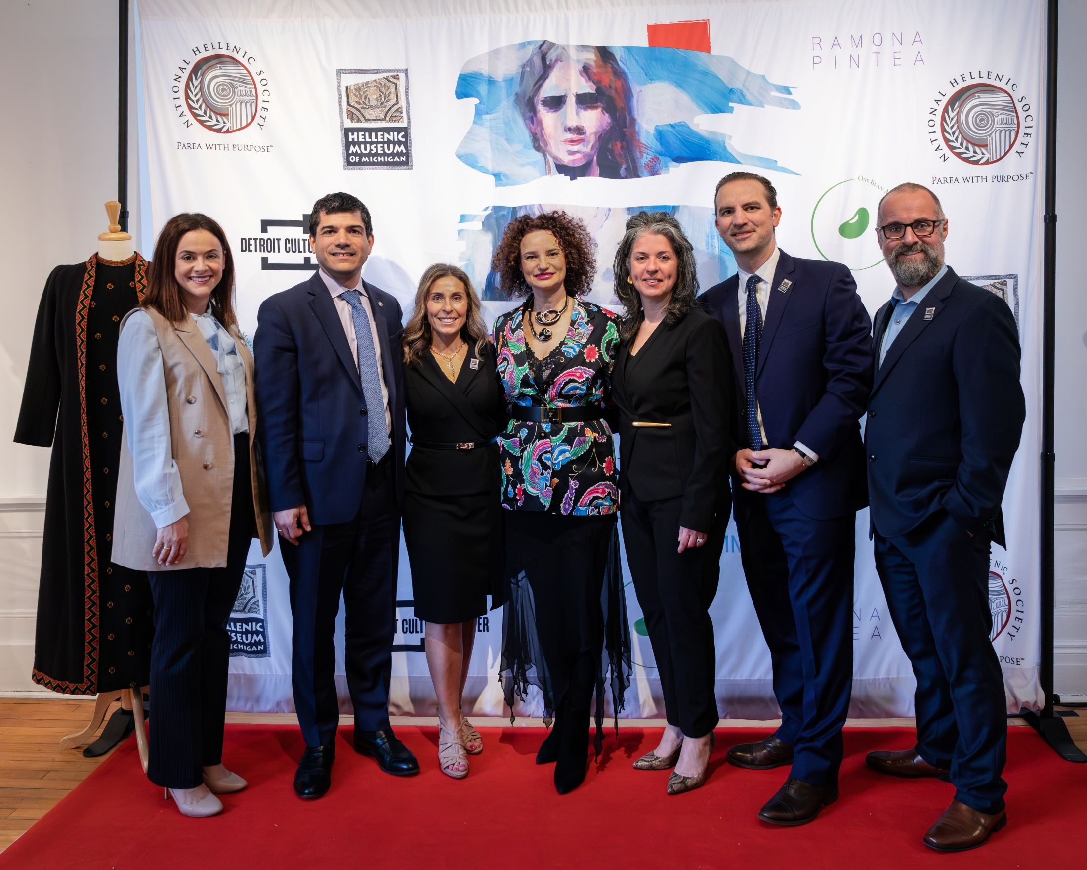 The exhibition brings together women's history, Greek history, art, and women's empowerment, capturing strength and resilience across generations and cultures. Its wide-reaching impact was reflected in the evening's distinguished guests, including Consuls General of Greece Emmanuel Koubarakis and Georgia Tasiopoulou; representatives of the Romanian Consulate; Andreea Bordeianu, Ph.D., of the American Romanian Cultural Society of Detroit; and Cristina Stamatin, representing Tangent Club USA, an international women's organization; and Barbara Heller, director and conservator, special projects at Detroit Institute of Arts. The evening also drew artists, influencers, and community members from across the greater Detroit area, all coming together to celebrate the opening. To date, the Museum has welcomed visitors from Illinois, Texas, Pennsylvania, Florida, New York, and even South Africa.